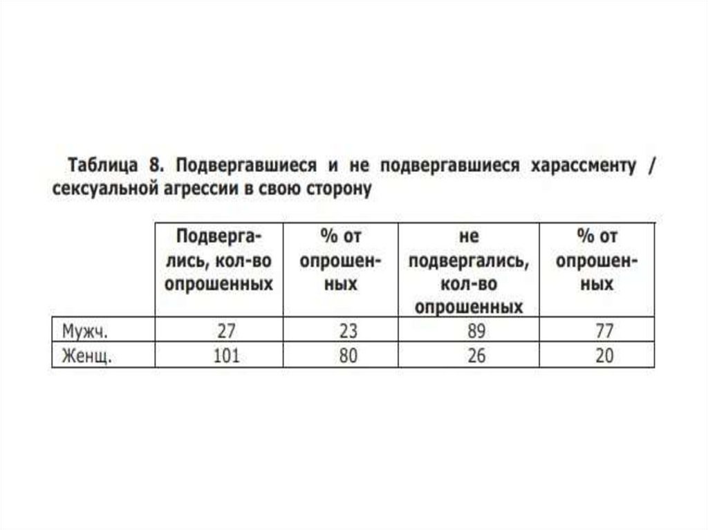 Статистика* насильственных случаев* По данным анкетирования 116 мужчин и 127 женщин, практиковавших