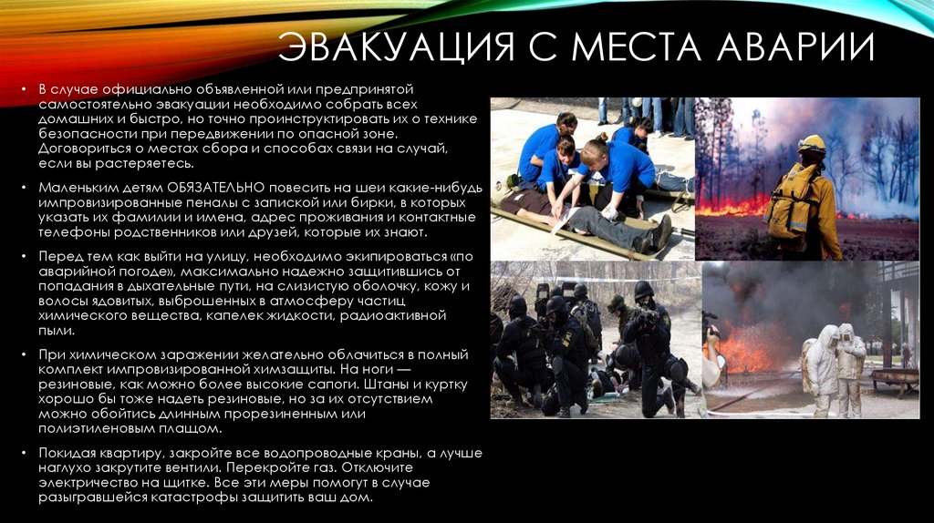 ЭВАКУАЦИЯ С МЕСТА АВАРИИ• В случае официально объявленной или предпринятой