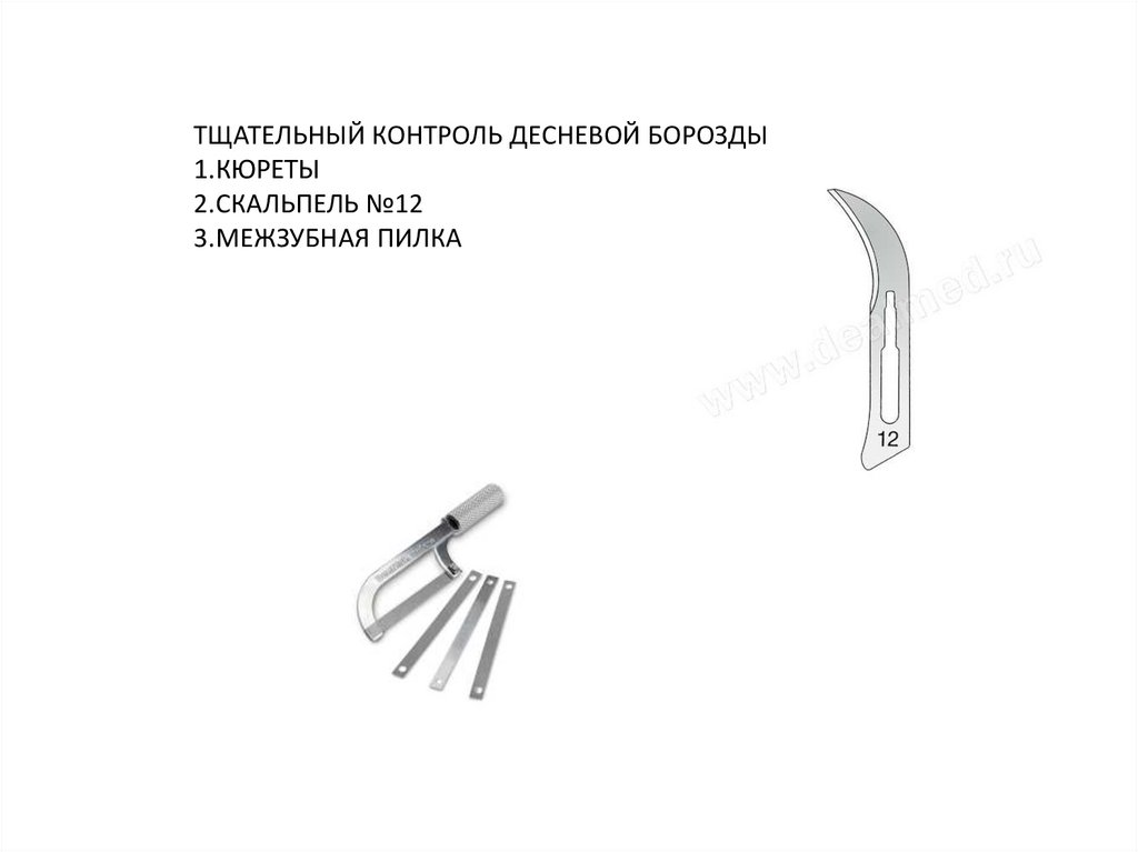 ТЩАТЕЛЬНЫЙ КОНТРОЛЬ ДЕСНЕВОЙ БОРОЗДЫ1.КЮРЕТЫ