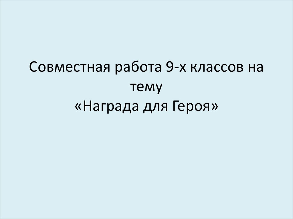 Совместная работа 9-х классов на тему «Награда для Героя»