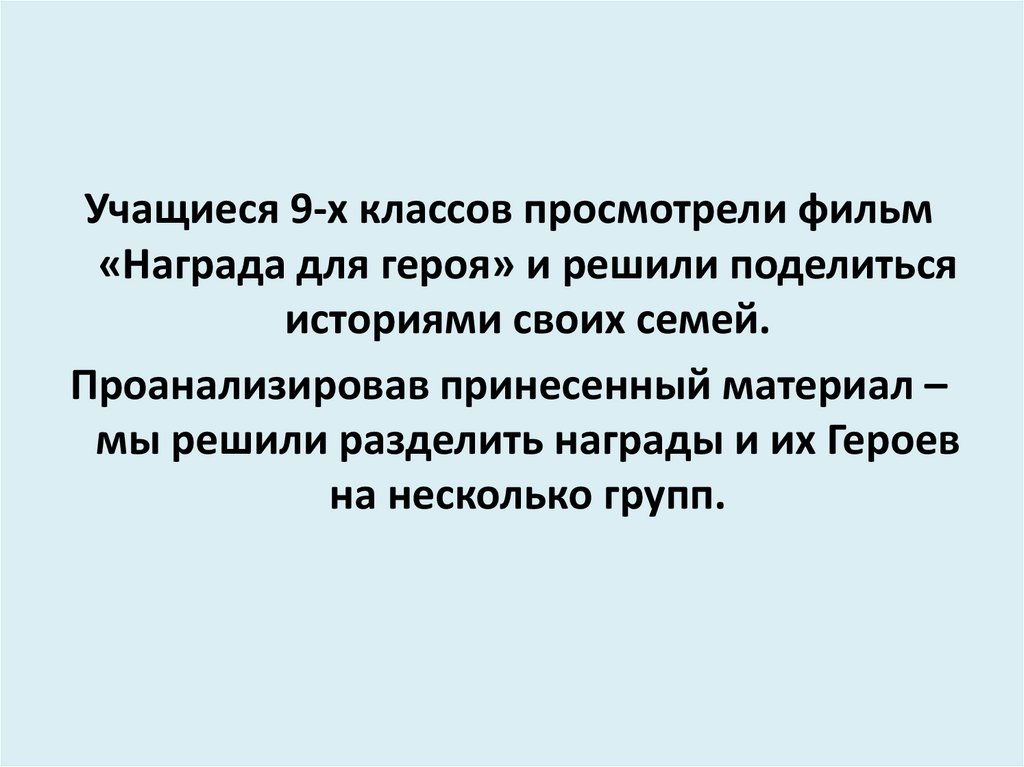 Учащиеся 9-х классов просмотрели фильм«Награда для героя» и решили поделиться