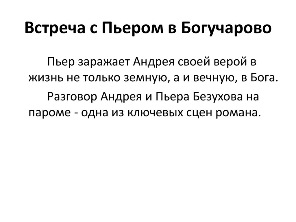 Встреча с Пьером в БогучаровоПьер заражает Андрея своей верой в