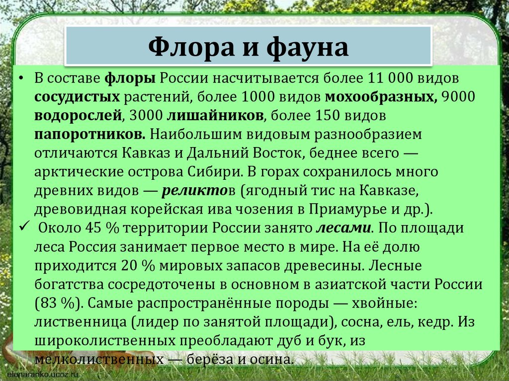 Флора и фауна• В составе флоры России насчитывается более 11 000 видов