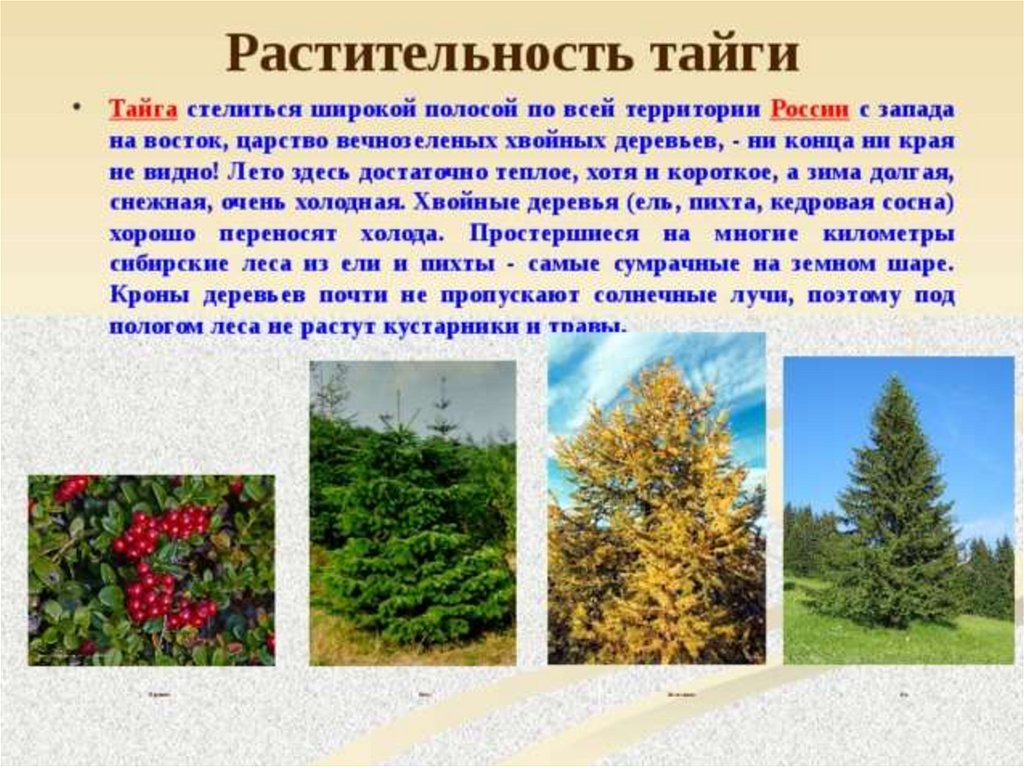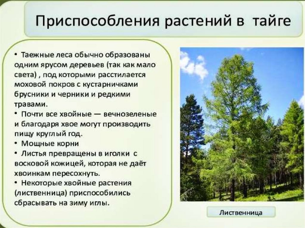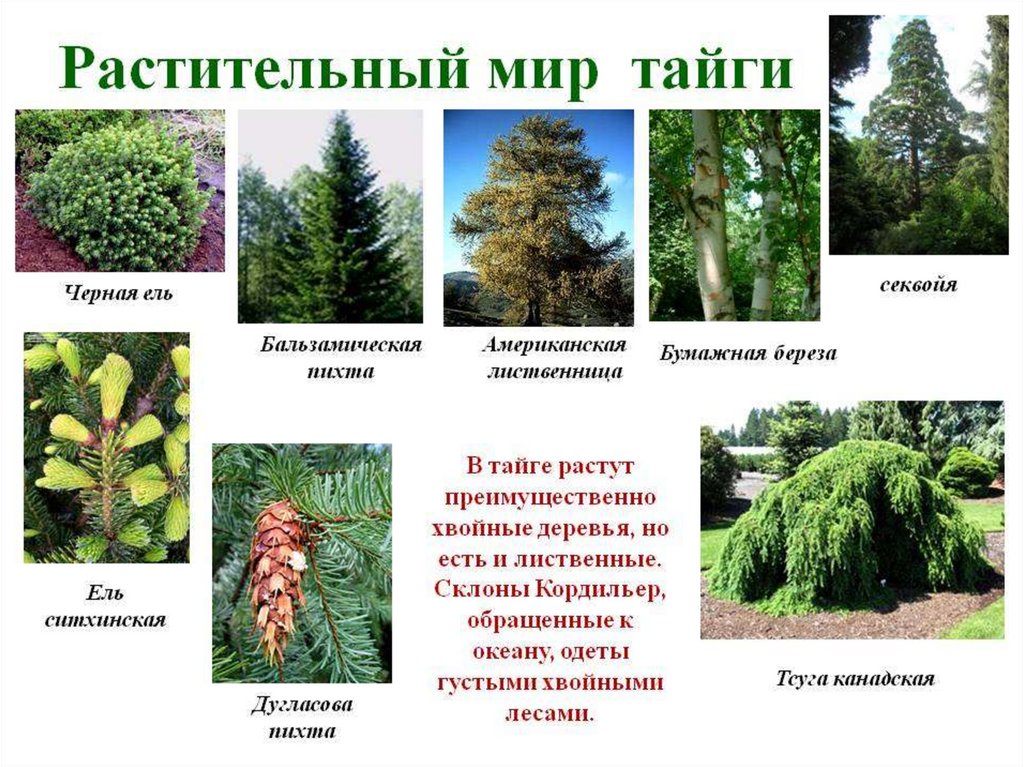 лиственница (лидер по занятой площади), сосна, ель, кедр. Из