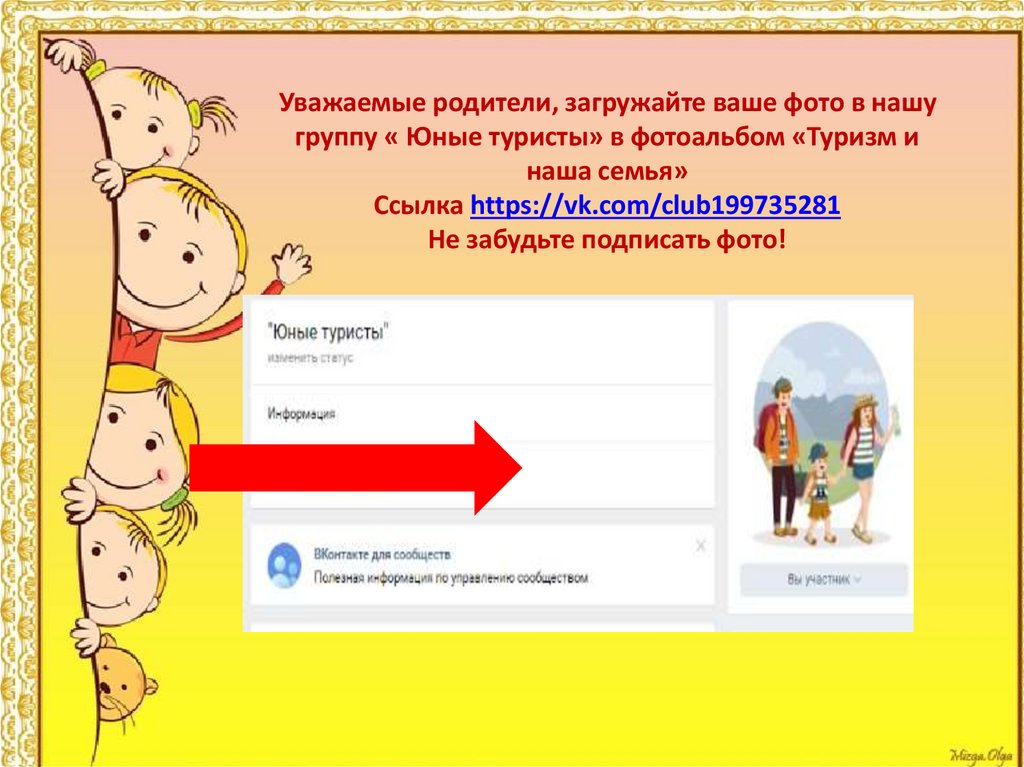 Уважаемые родители, загружайте ваше фото в нашугруппу « Юные туристы» в фотоальбом «Туризм и
