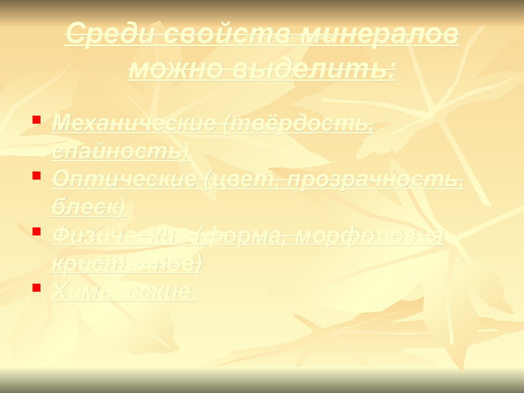 Среди свойств минераловможно выделить: