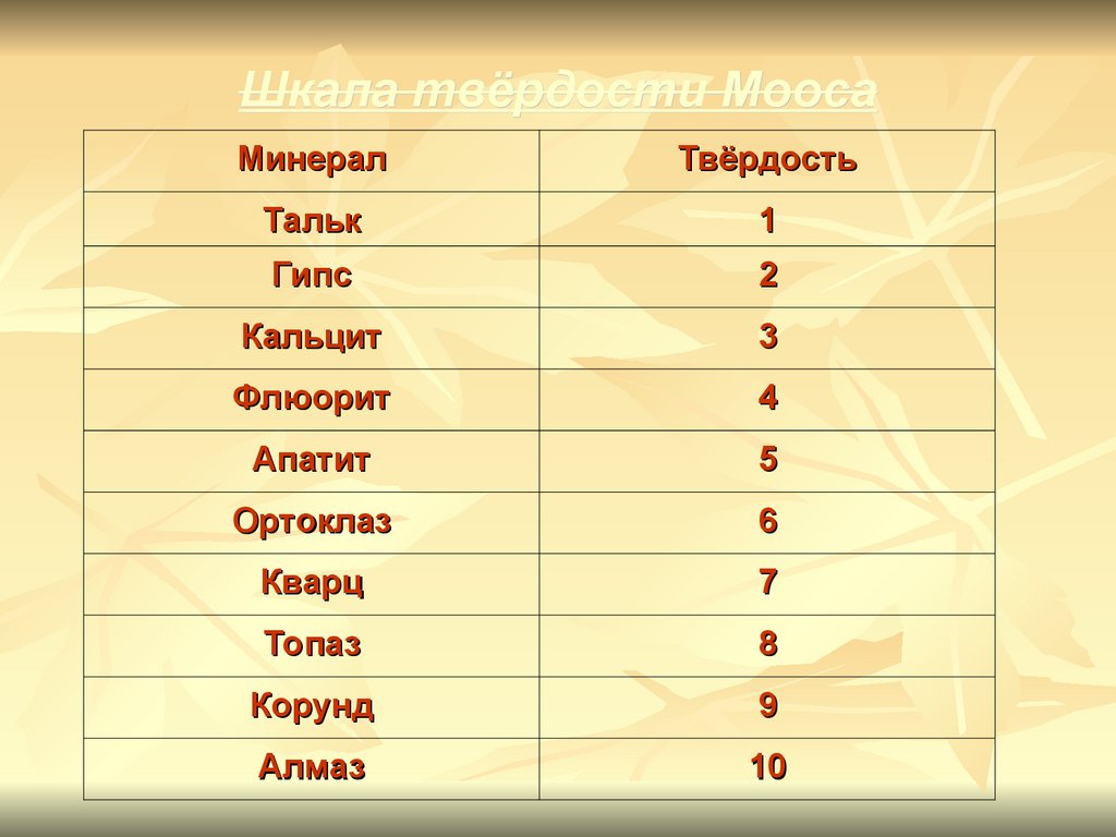 Шкала твёрдости МоосаМинерал