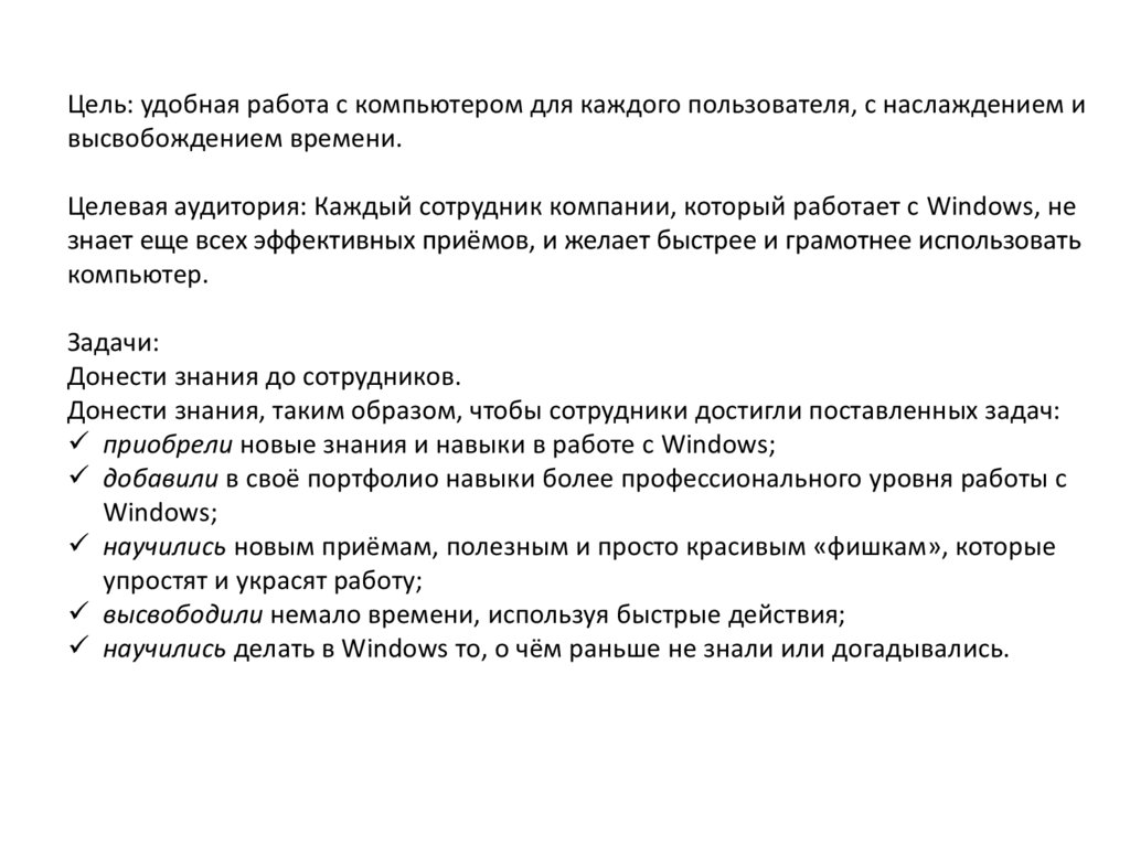 Цель: удобная работа с компьютером для каждого пользователя, с наслаждением ивысвобождением времени.