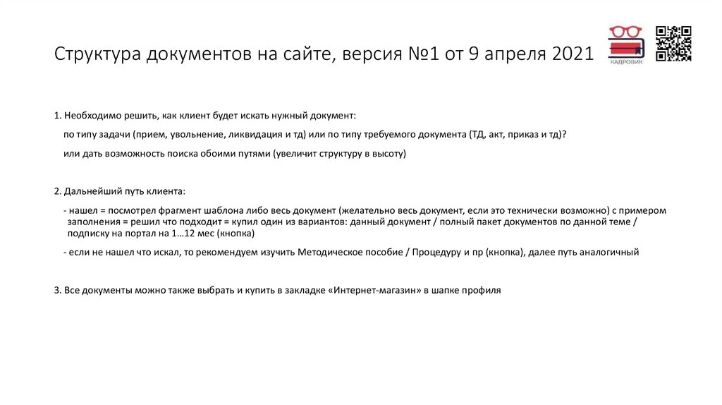Структура документов на сайте, версия №1 от 9 апреля 20211. Необходимо решить, как клиент будет искать нужный документ: