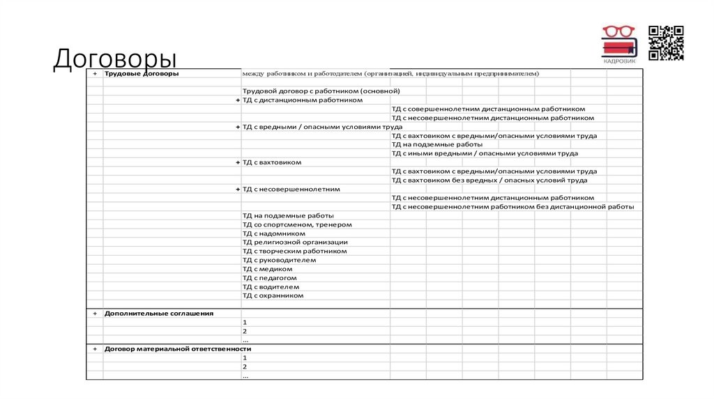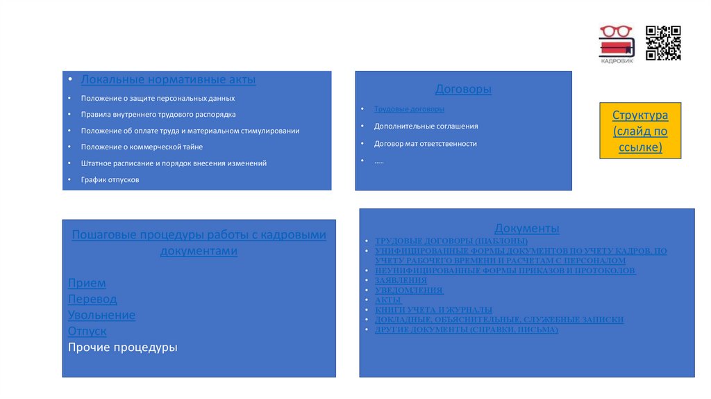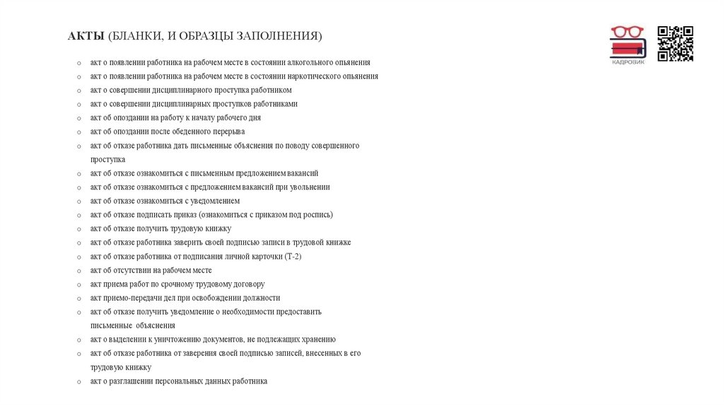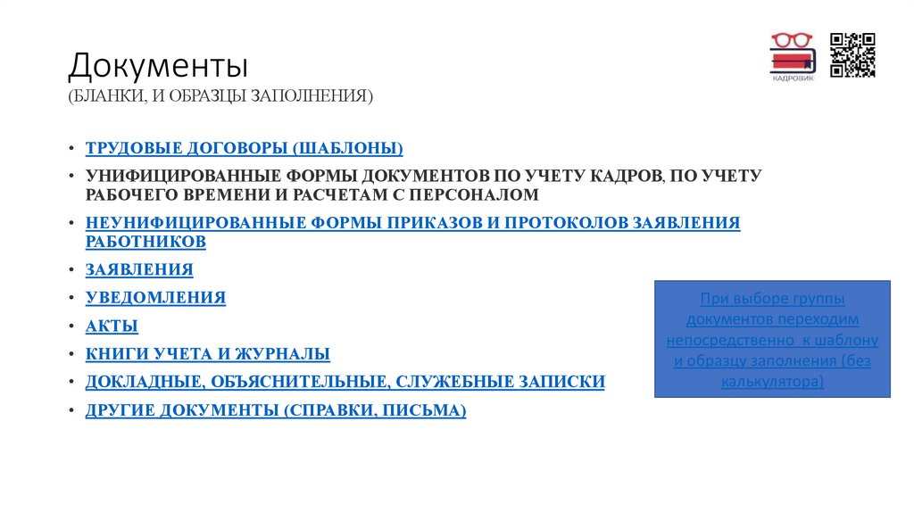 по типу задачи (прием, увольнение, ликвидация и тд) или по типу требуемого документа (ТД, акт, приказ и тд)?