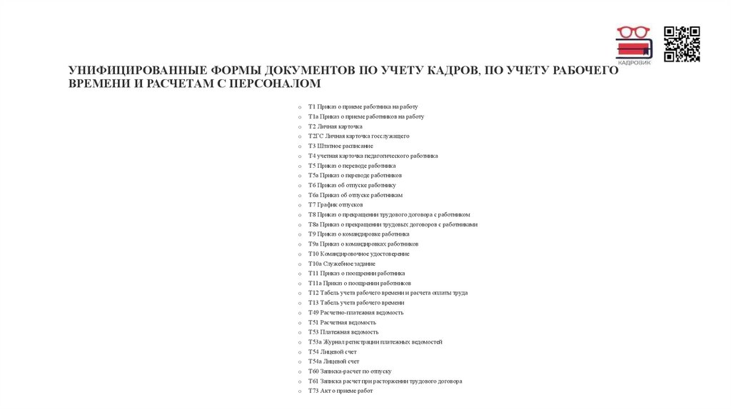 • УНИФИЦИРОВАННЫЕ ФОРМЫ ДОКУМЕНТОВ ПО УЧЕТУ КАДРОВ, ПО