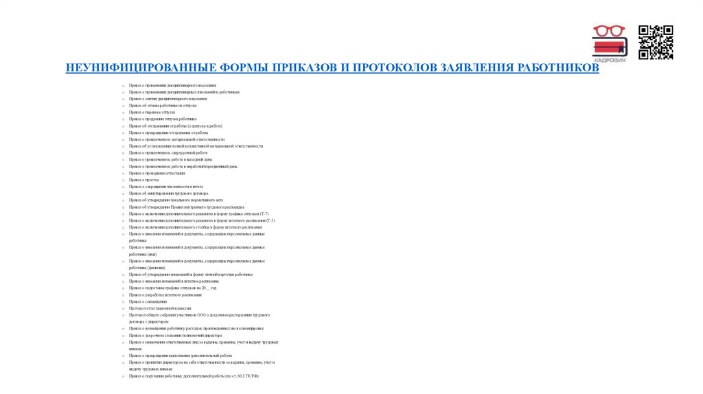 • НЕУНИФИЦИРОВАННЫЕ ФОРМЫ ПРИКАЗОВ И ПРОТОКОЛОВ