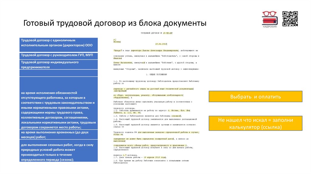 Готовый трудовой договор из блока документыТрудовой договор с единоличным