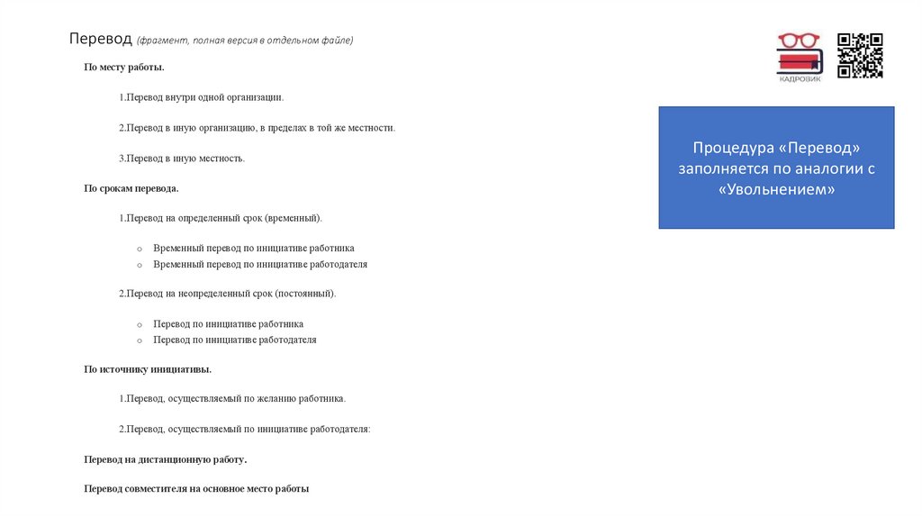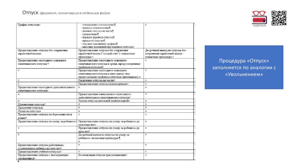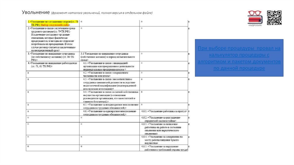 Увольнение (фрагмент каталога увольнений, полная версия в отдельном файле)При выборе процедуры провал на