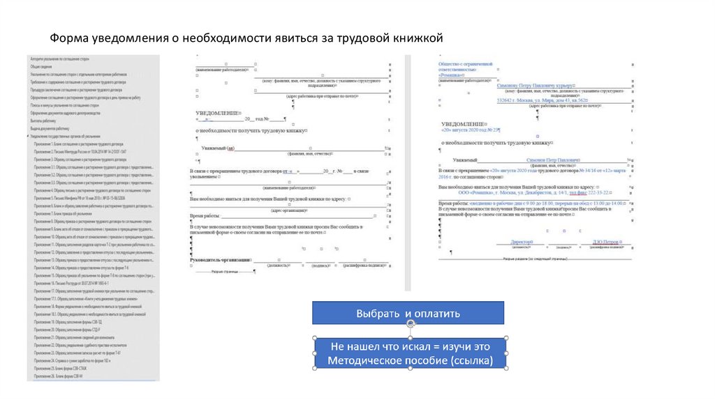 Форма уведомления о необходимости явиться за трудовой книжкой9.