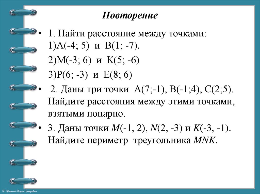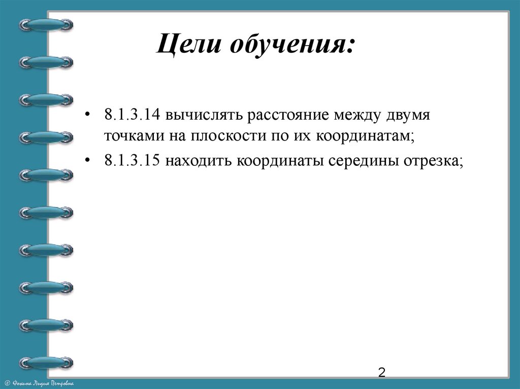 Цели обучения:• 8.1.3.14 вычислять расстояние между двумя