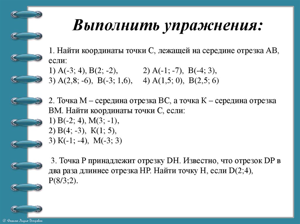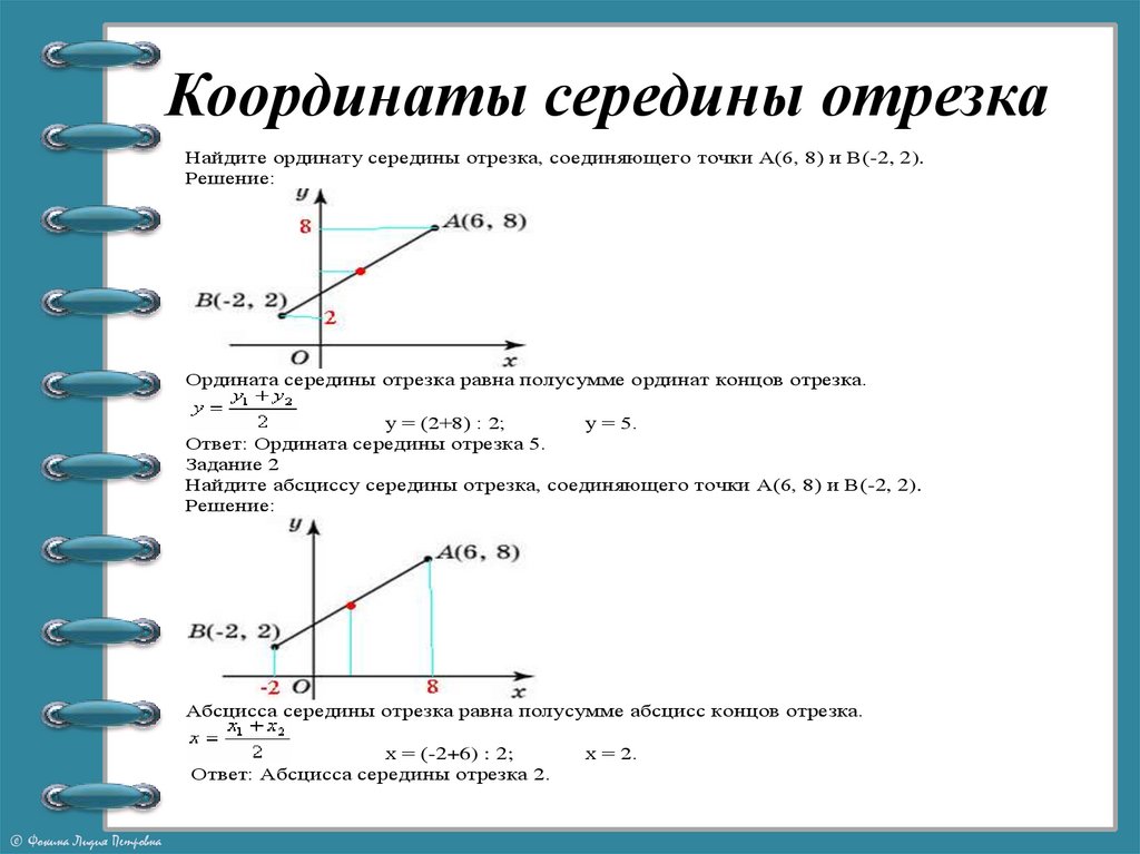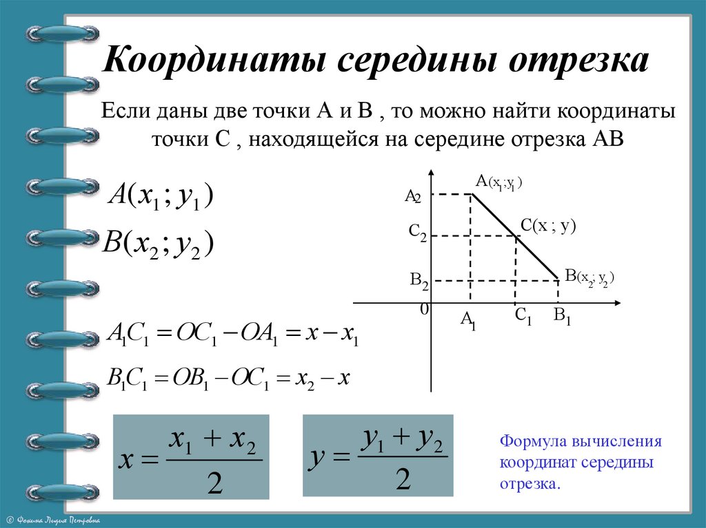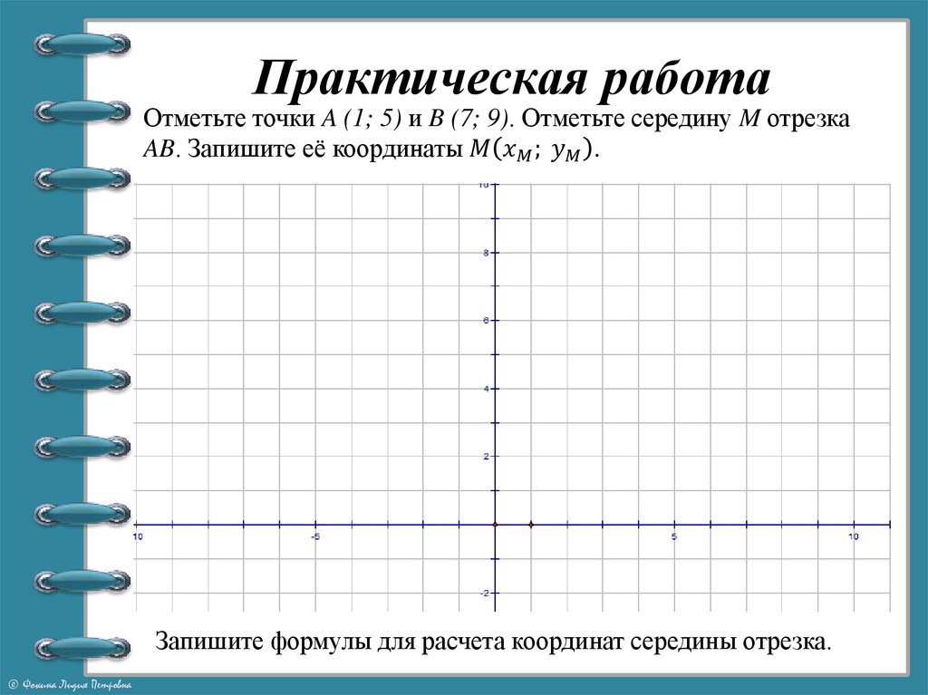 Практическая работаОтметьте точки A (1; 5) и B (7; 9). Отметьте середину M отрезка