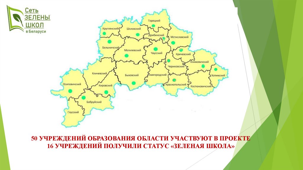 50 УЧРЕЖДЕНИЙ ОБРАЗОВАНИЯ ОБЛАСТИ УЧАСТВУЮТ В ПРОЕКТЕ16 УЧРЕЖДЕНИЙ ПОЛУЧИЛИ СТАТУС «ЗЕЛЕНАЯ ШКОЛА»