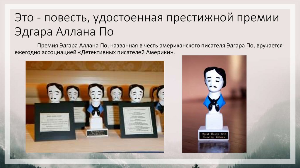 Это - повесть, удостоенная престижной премииЭдгара Аллана По