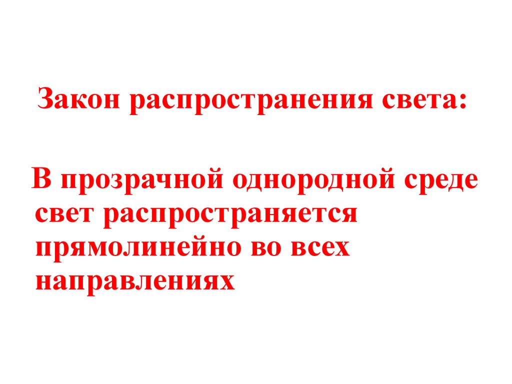 Закон распространения света:В прозрачной однородной среде