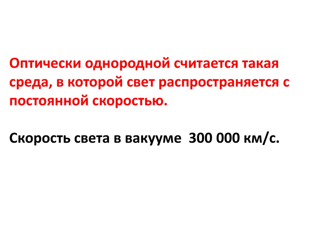 Оптически однородной считается такаясреда, в которой свет распространяется с