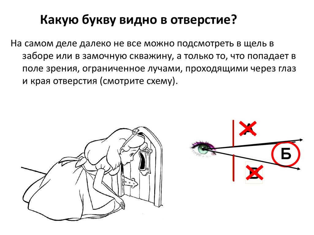 Какую букву видно в отверстие?На самом деле далеко не все можно подсмотреть в щель в