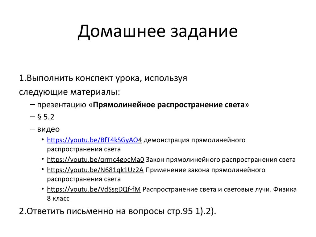 • https://youtu.be/qrmc4gpcMa0 Закон прямолинейного распространения света
