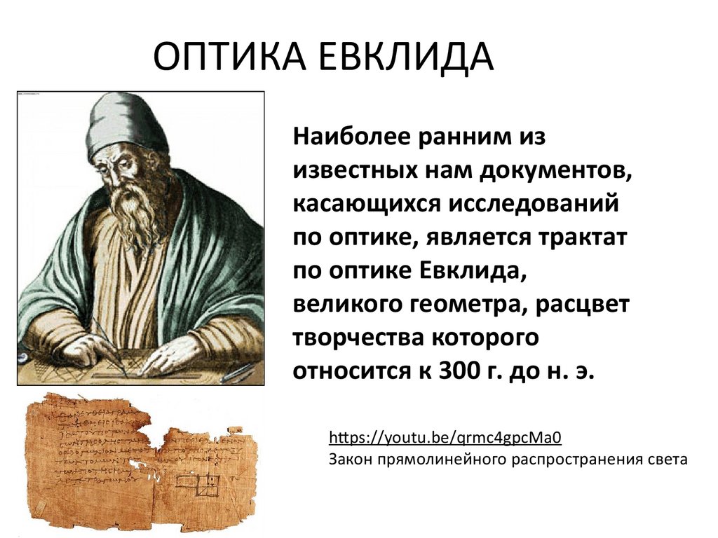 ОПТИКА ЕВКЛИДАНаиболее ранним из