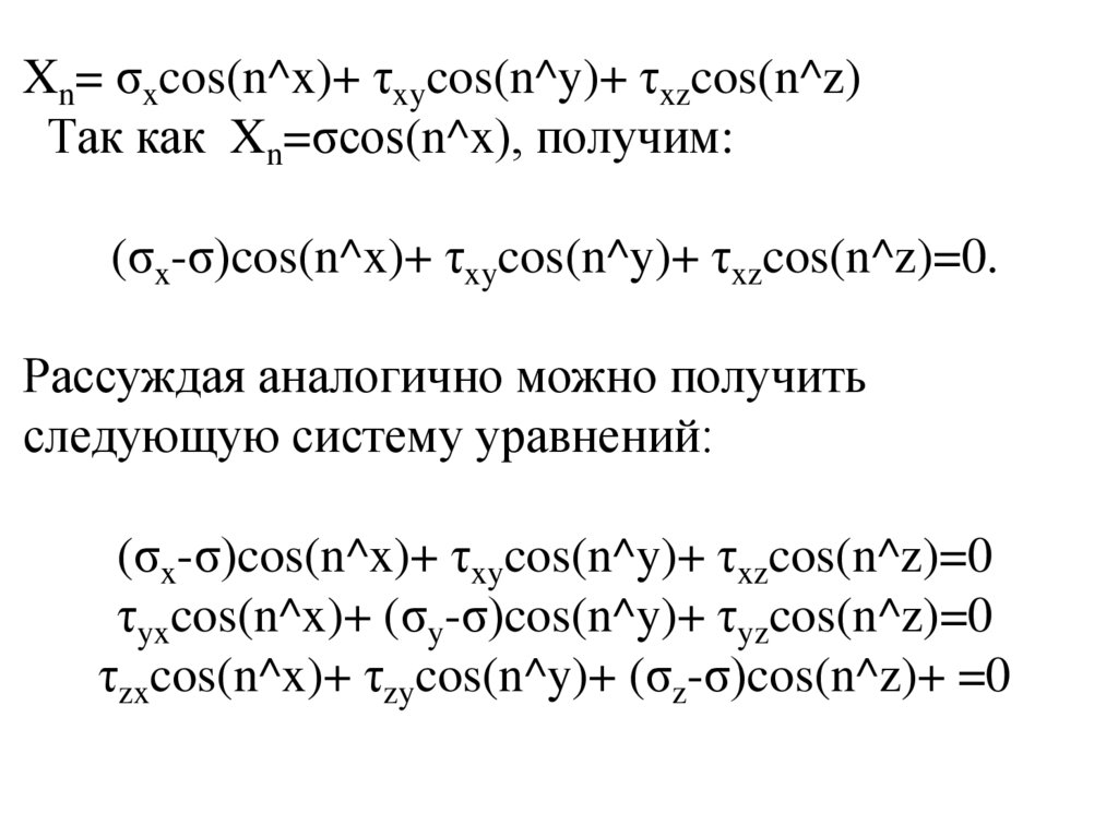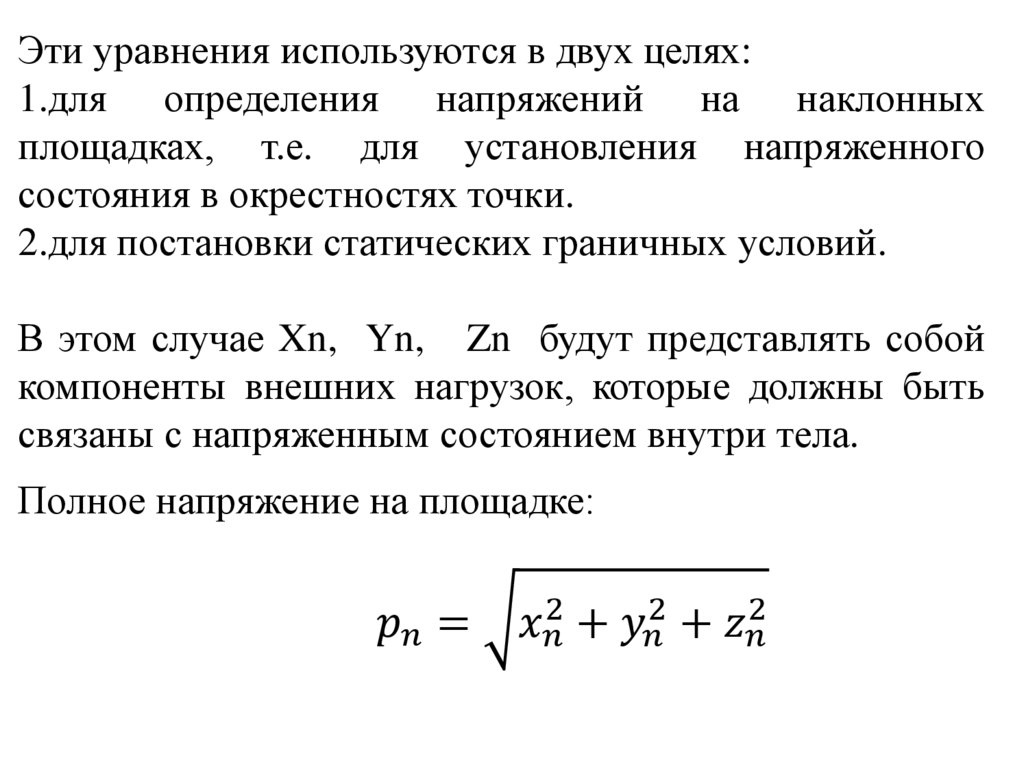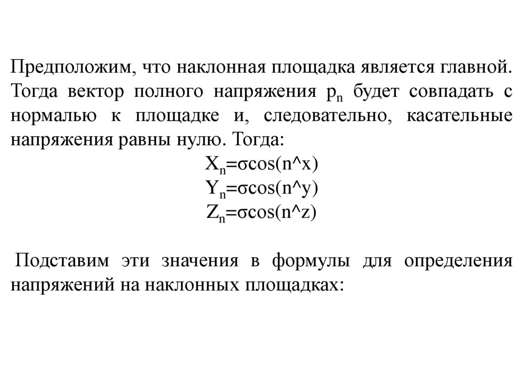 Напряжения на наклонных площадках.Условия на поверхности