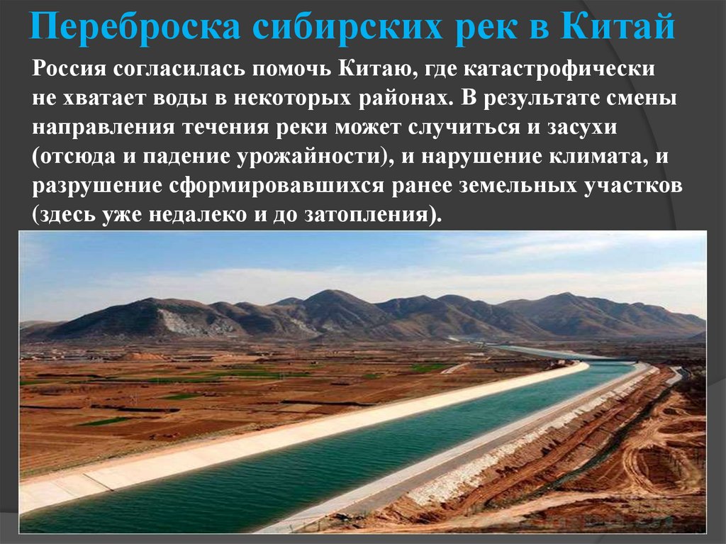 Переброска сибирских рек в КитайРоссия согласилась помочь Китаю, где катастрофически