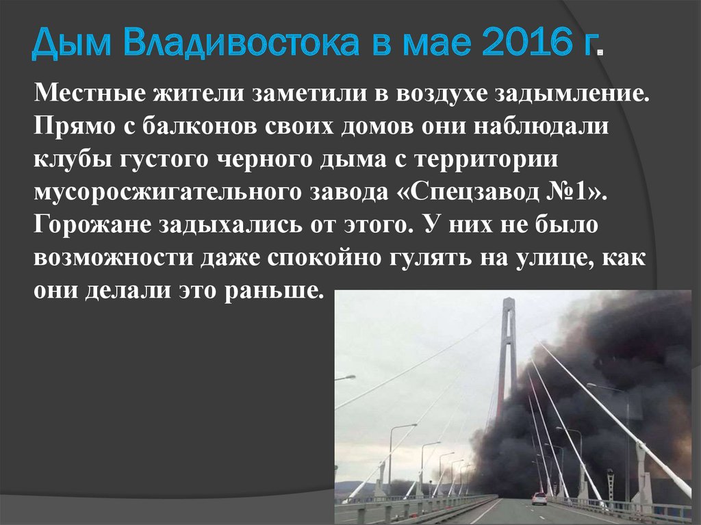 Дым Владивостока в мае 2016 г.Местные жители заметили в воздухе задымление.