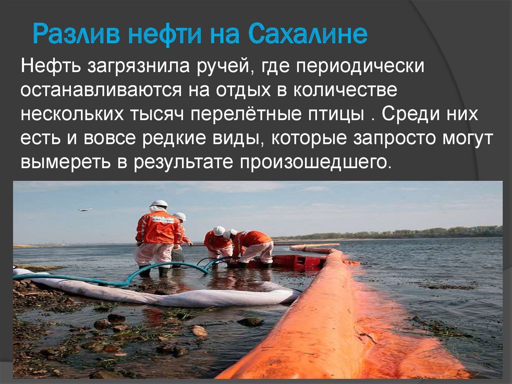 Разлив нефти на СахалинеНефть загрязнила ручей, где периодически