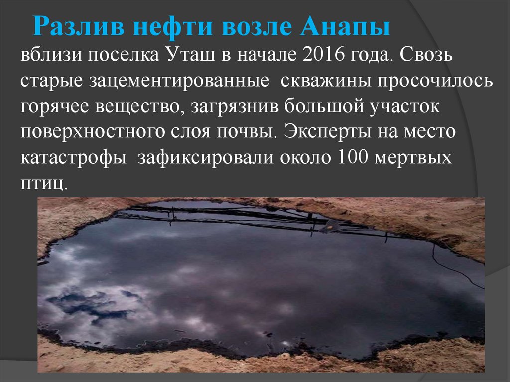 Разлив нефти возле Анапывблизи поселка Уташ в начале 2016 года. Свозь