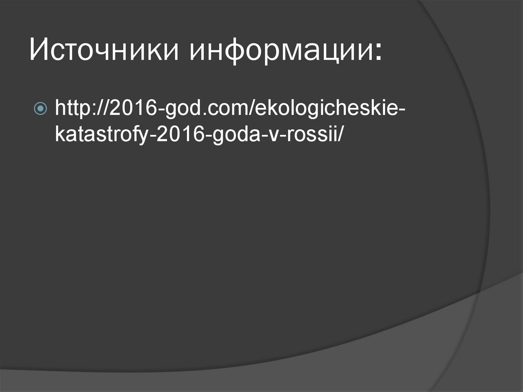 Источники информации:http://2016-god.com/ekologicheskiekatastrofy-2016-goda-v-rossii/