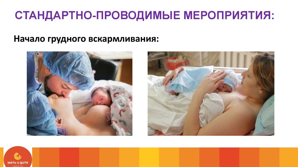 СТАНДАРТНО-ПРОВОДИМЫЕ МЕРОПРИЯТИЯ:Начало грудного вскармливания:
