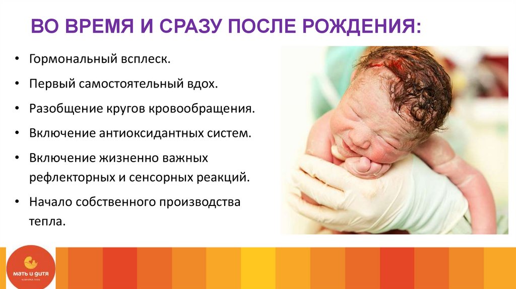 ВО ВРЕМЯ И СРАЗУ ПОСЛЕ РОЖДЕНИЯ:• Гормональный всплеск.