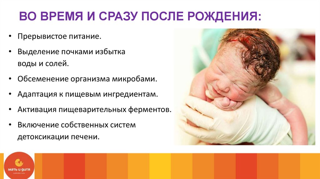ВО ВРЕМЯ И СРАЗУ ПОСЛЕ РОЖДЕНИЯ:• Прерывистое питание.