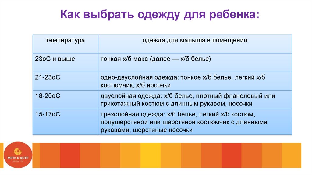двуслойная одежда: х/б белье, х/б или трикотажный костюм с длинными рукавами, носки, х/б или трикотажный чепчик