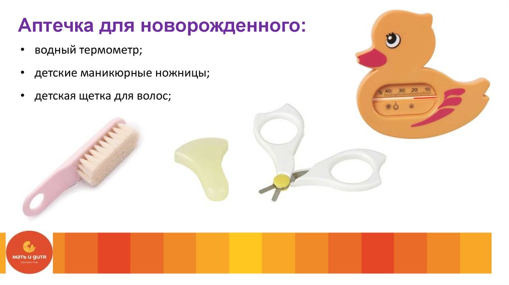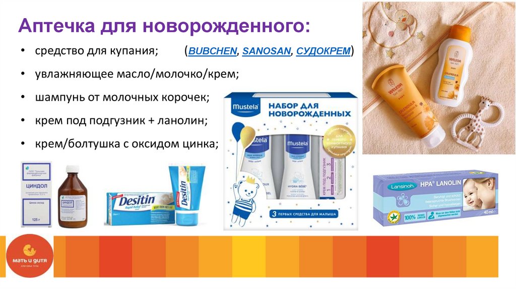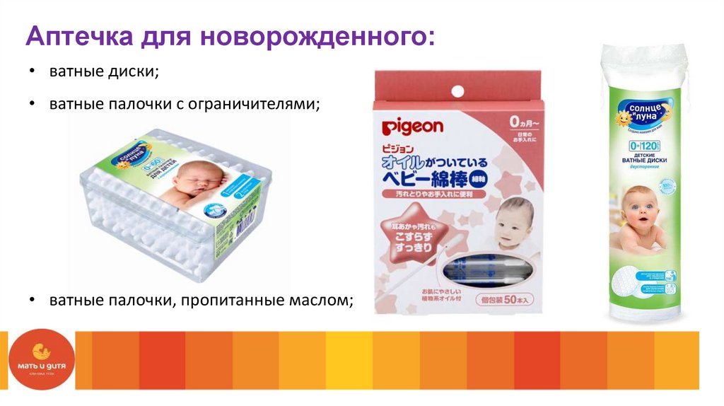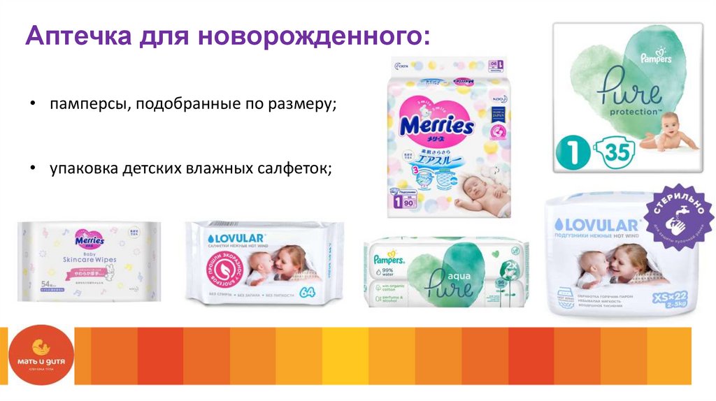 Аптечка для новорожденного:• памперсы, подобранные по размеру;