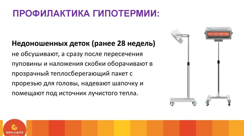 ПРОФИЛАКТИКА ГИПОТЕРМИИ:Недоношенных деток (ранее 28 недель)