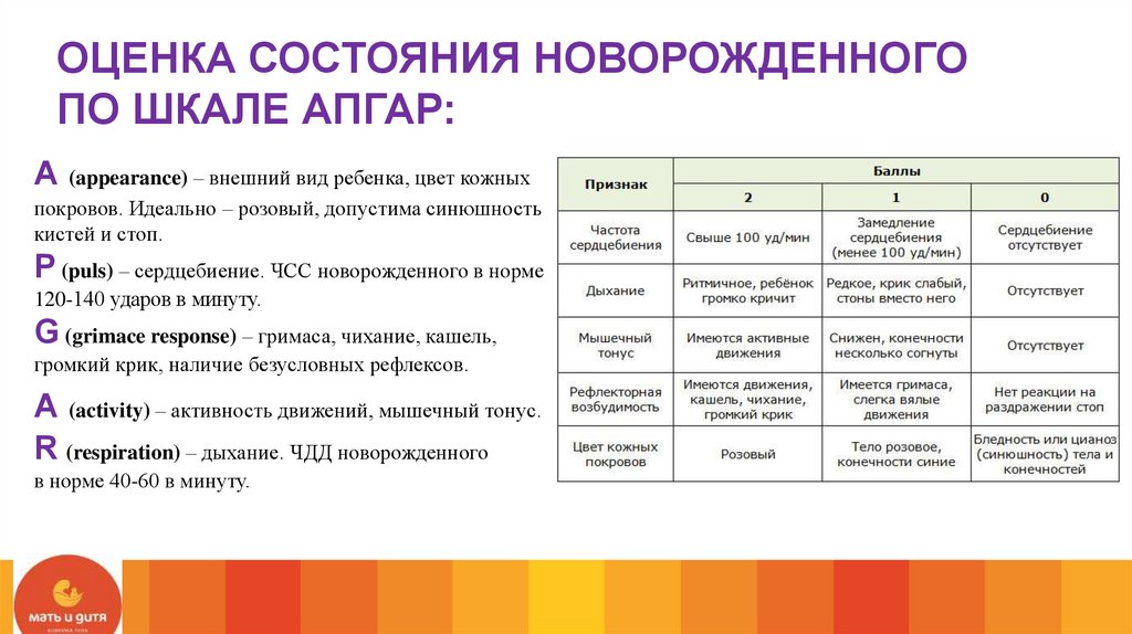 ОЦЕНКА СОСТОЯНИЯ НОВОРОЖДЕННОГОПО ШКАЛЕ АПГАР: