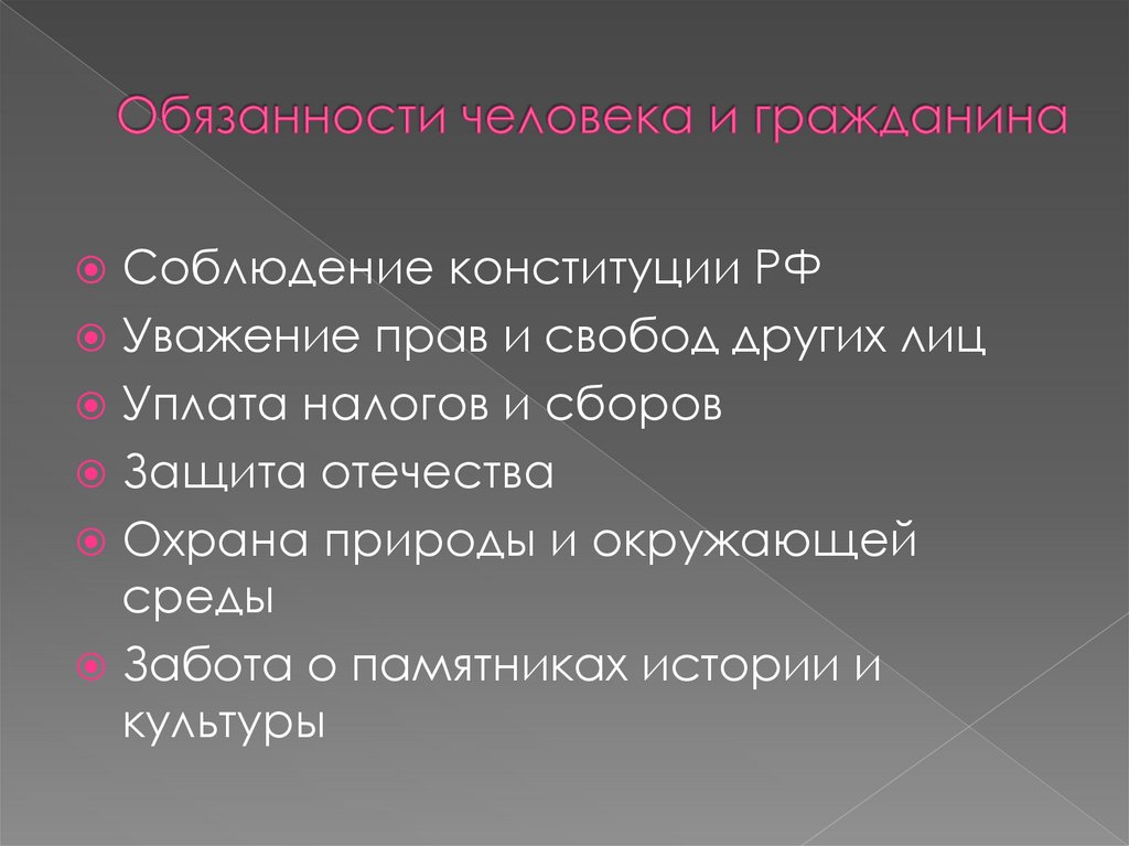 Соблюдение конституции РФУважение прав и свобод других лиц