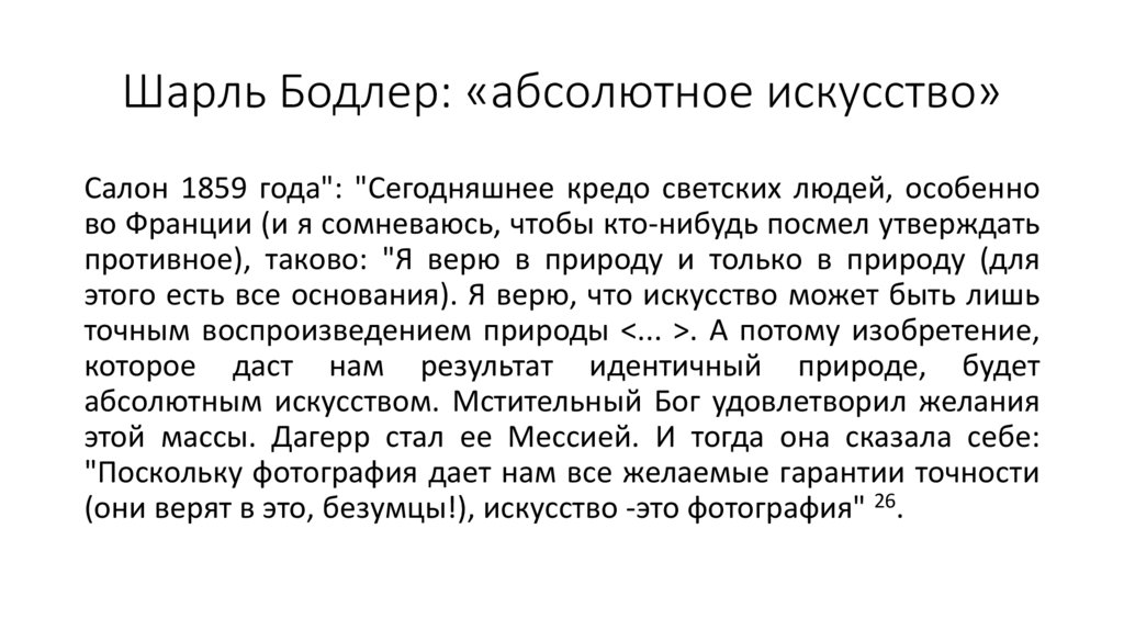 Шарль Бодлер: «абсолютное искусство»Салон 1859 года": "Сегодняшнее кредо светских людей, особенно
