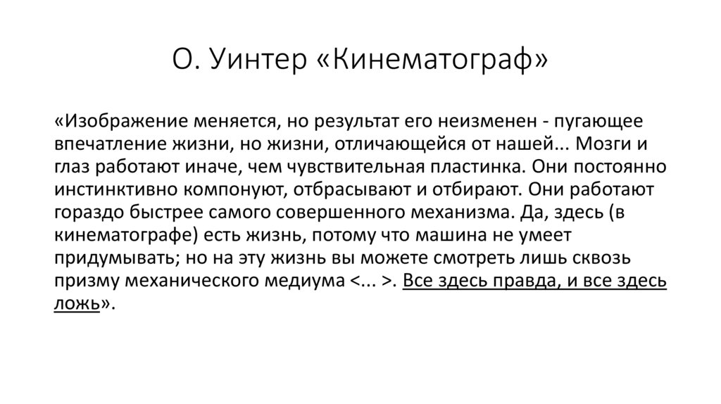 О. Уинтер «Кинематограф»«Изображение меняется, но результат его неизменен - пугающее