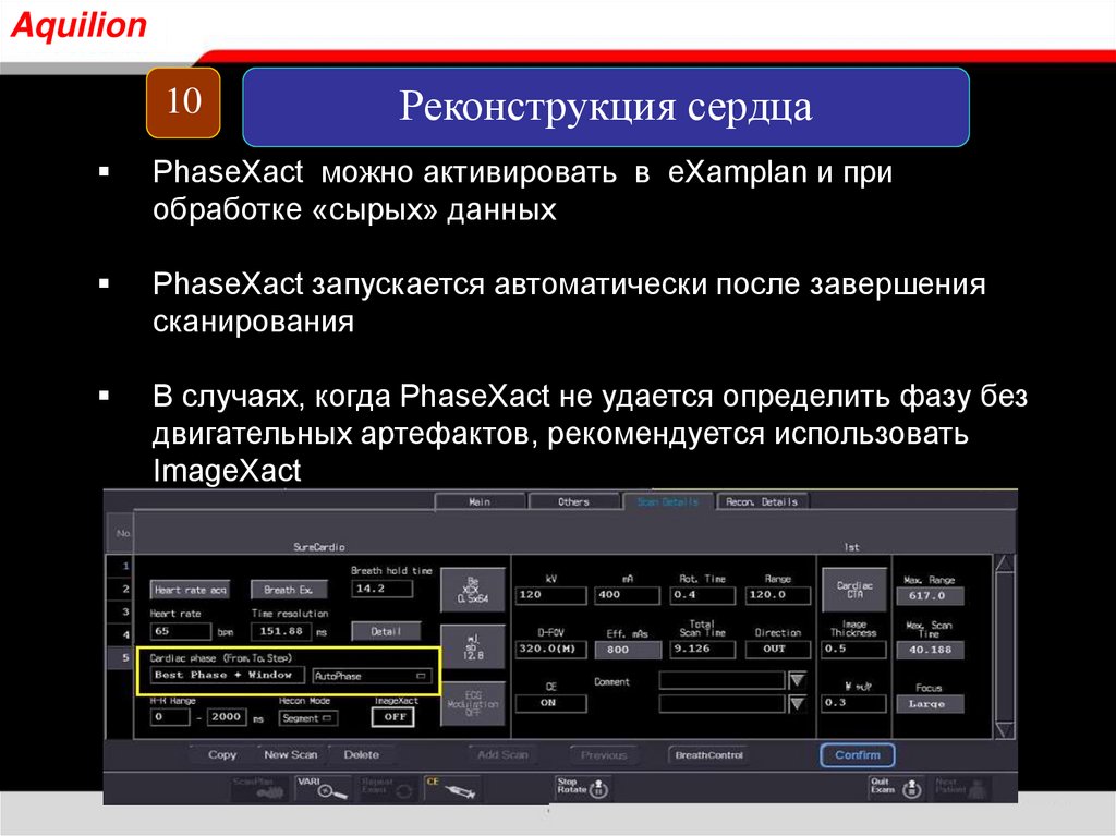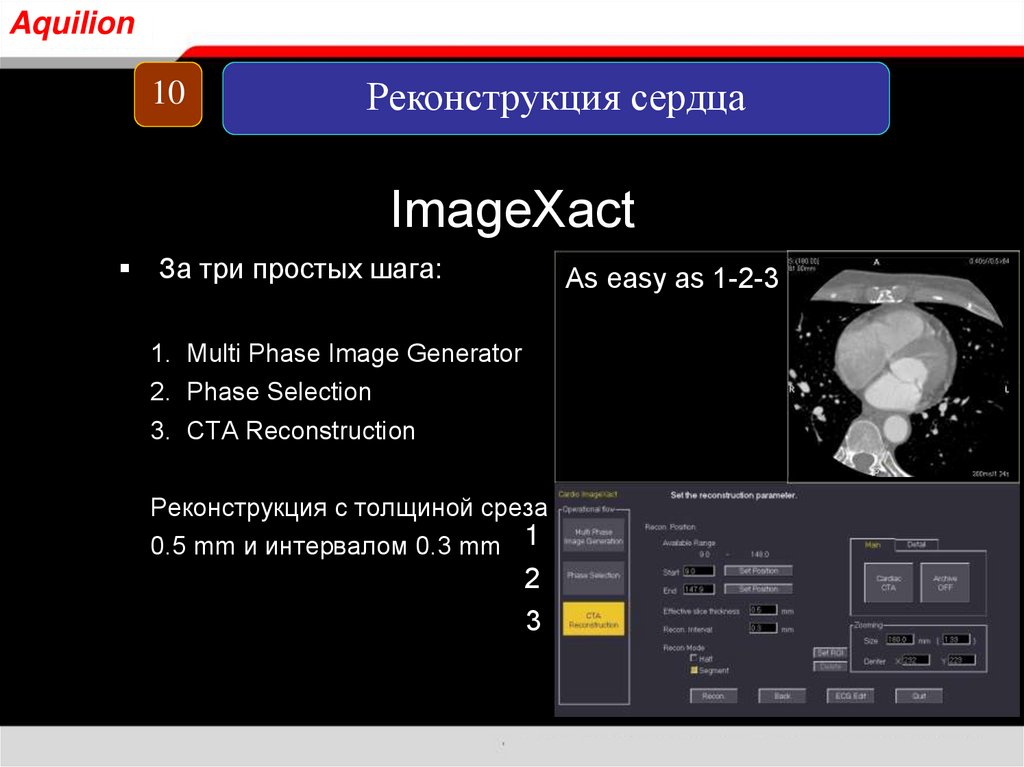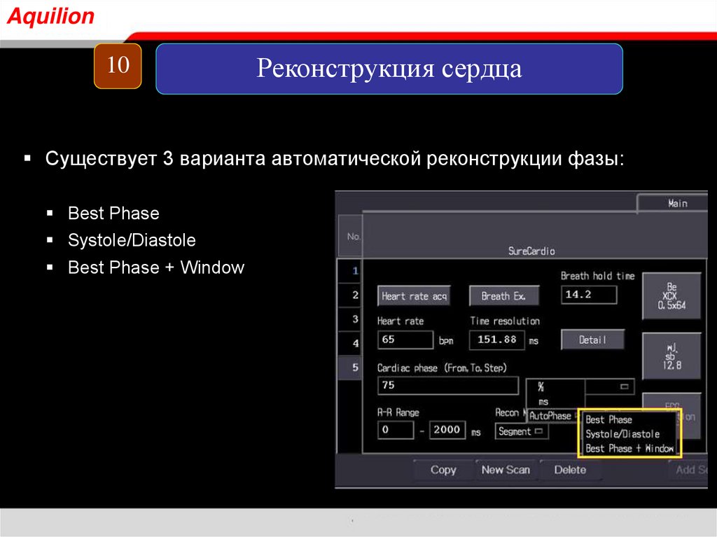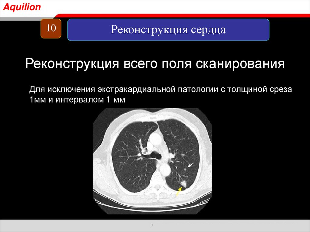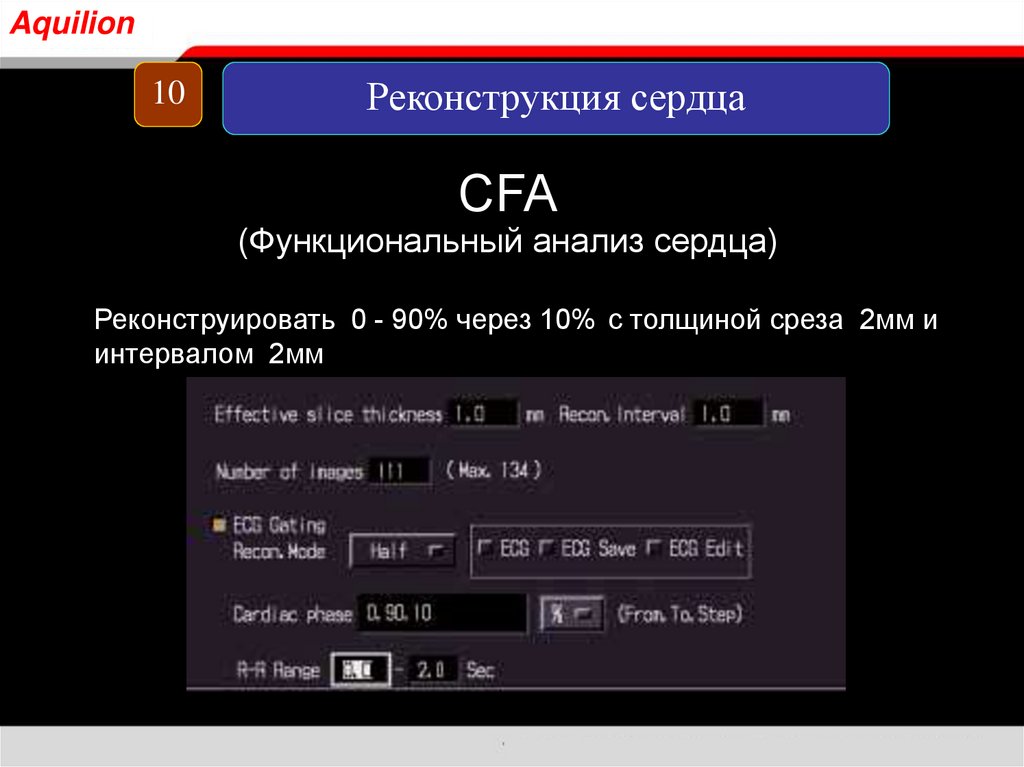 Реконструировать 0 - 90% через 10% с толщиной среза 2мм и