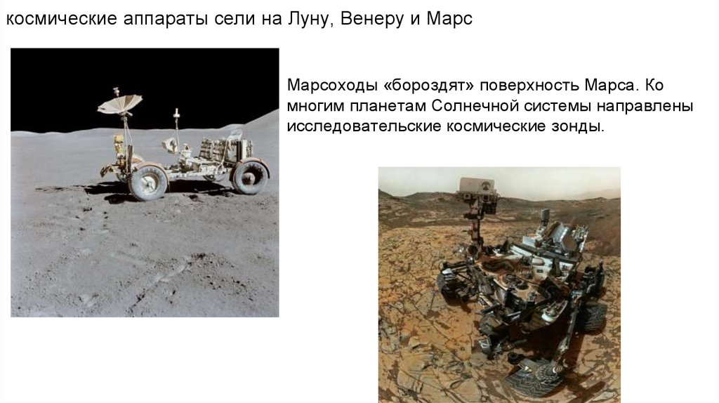 космические аппараты сели на Луну, Венеру и МарсМарсоходы «бороздят» поверхность Марса. Ко