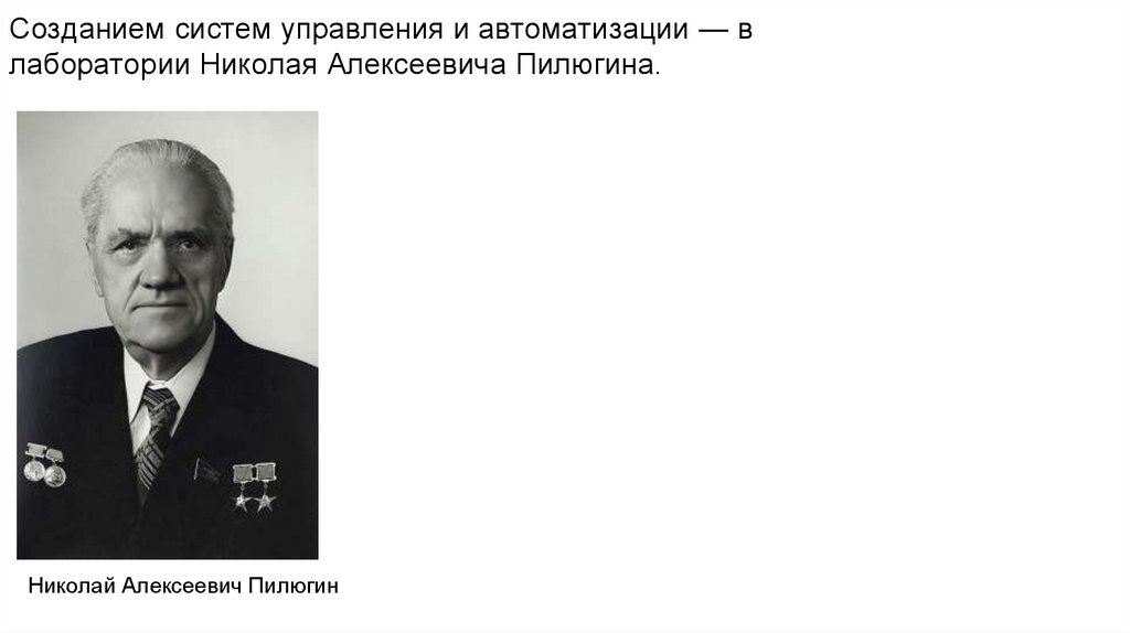 Созданием систем управления и автоматизации — влаборатории Николая Алексеевича Пилюгина.