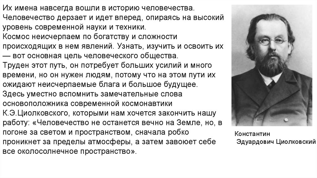 К.Э.Циолковского, которыми нам хочется закончить нашу