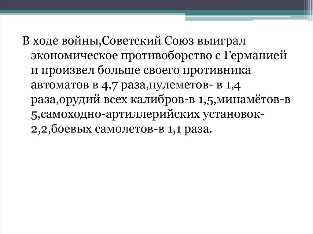 В ходе войны,Советский Союз выигралэкономическое противоборство с Германией