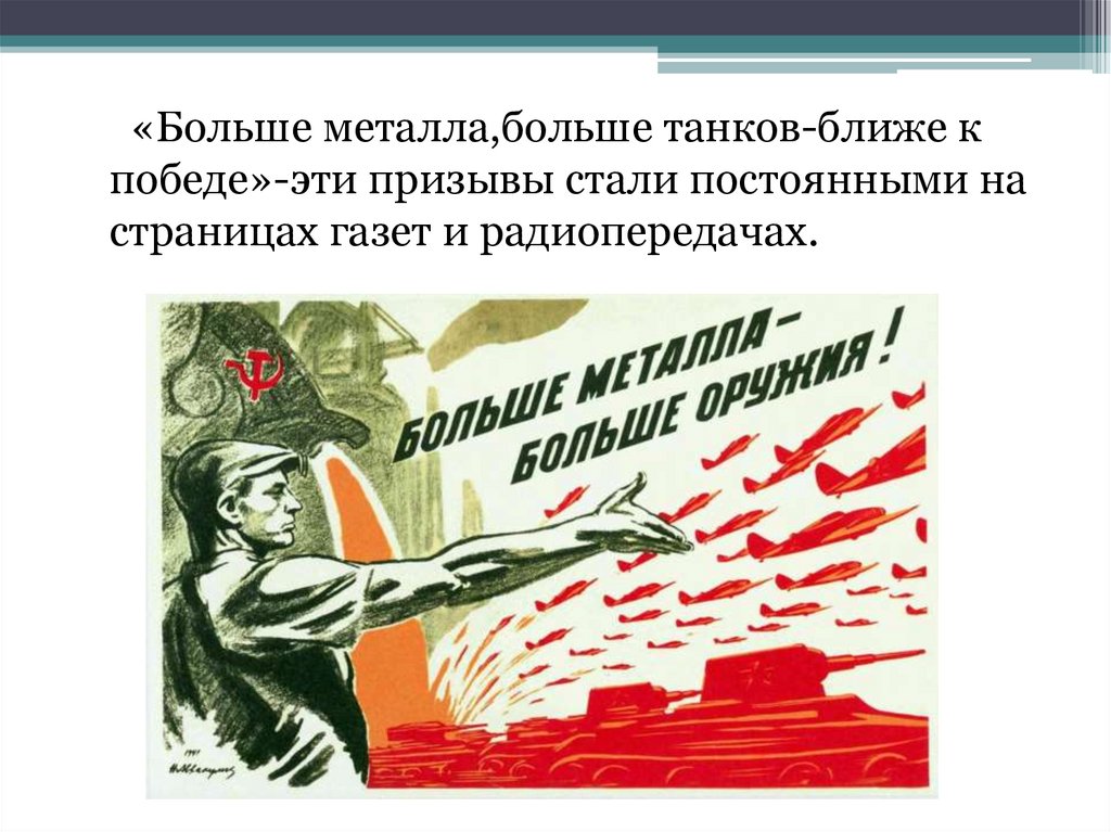 «Больше металла,больше танков-ближе кпобеде»-эти призывы стали постоянными на